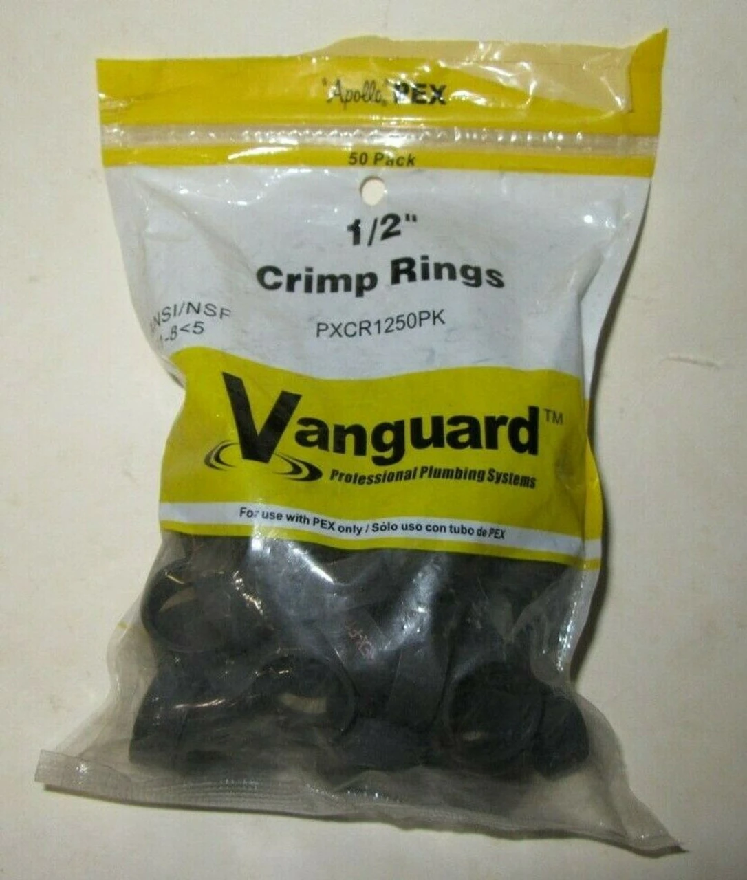 The ApolloPEX 1/2 in. Copper Crimp Ring (50-Pack) is simple to install and is designed for use with PEX pipe and barb fittings (not included). Made from copper for durability. Requires a crimping tool (sold separately). ApolloPEX fasteners are a key component of the most economical potable water piping systems. Also capable of integration into hydronic heating systems, ApolloPEX fasteners can be can be used with brass and plastic fittings, valves and manifolds (all sold separately). The ApolloPEX system is a comprehensive piping system comprised of brass fittings, poly alloy fittings, manifolds, valves, fasteners, tools and tubing designed for implementation in water delivery systems, simple or complex.