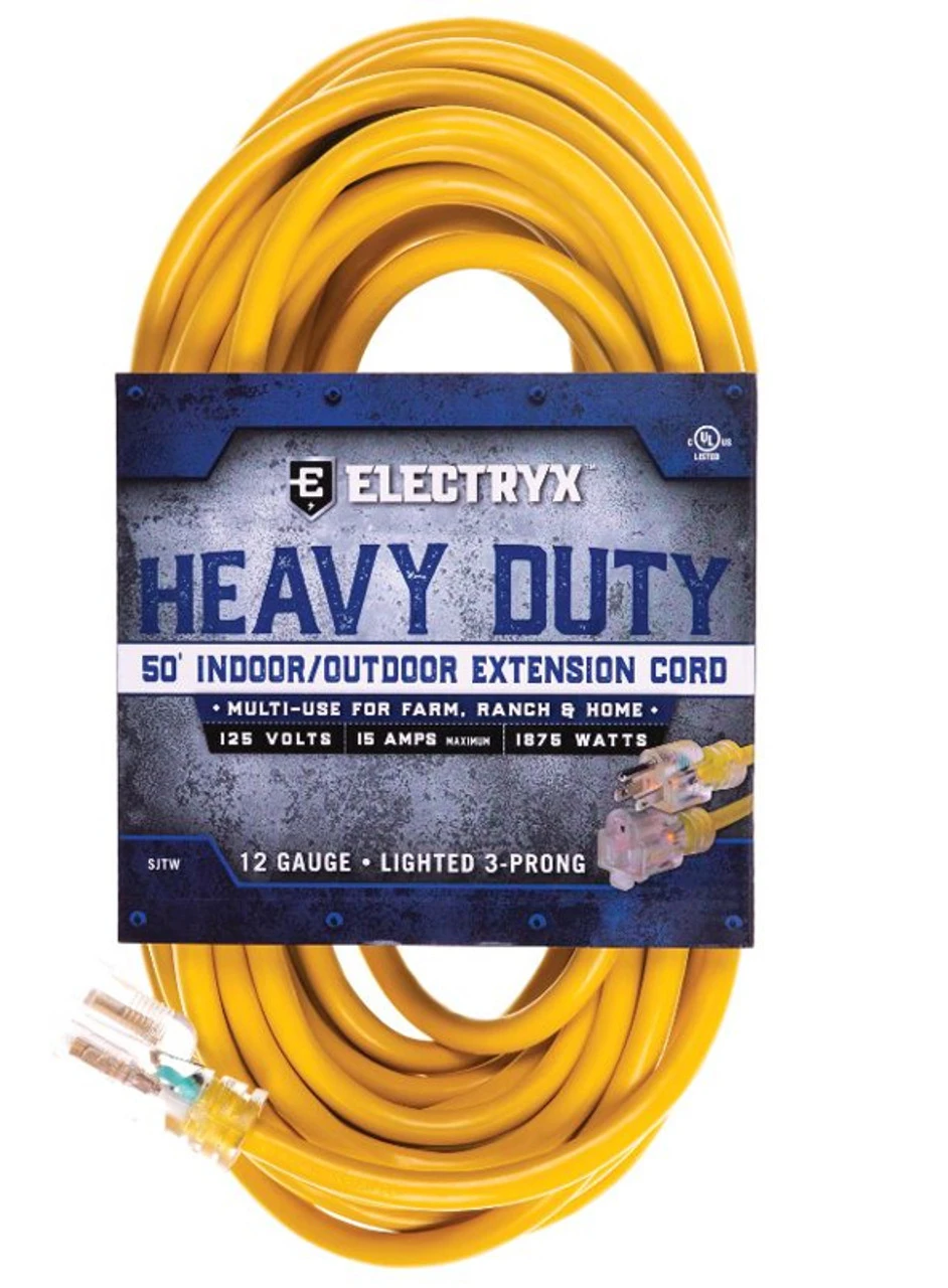 Electryx 50′ Heavy Duty Indoor/Outdoor Extension Cord – 12 Gauge, Yellow