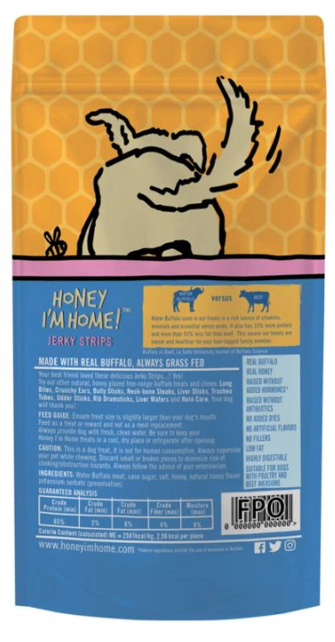 - A Healthy Dog Treat: Honey I’m Home treats are made from human grade water buffalo. You can have the peace of mind knowing you are rewarding your dog with a delicious and healthy dog snack.