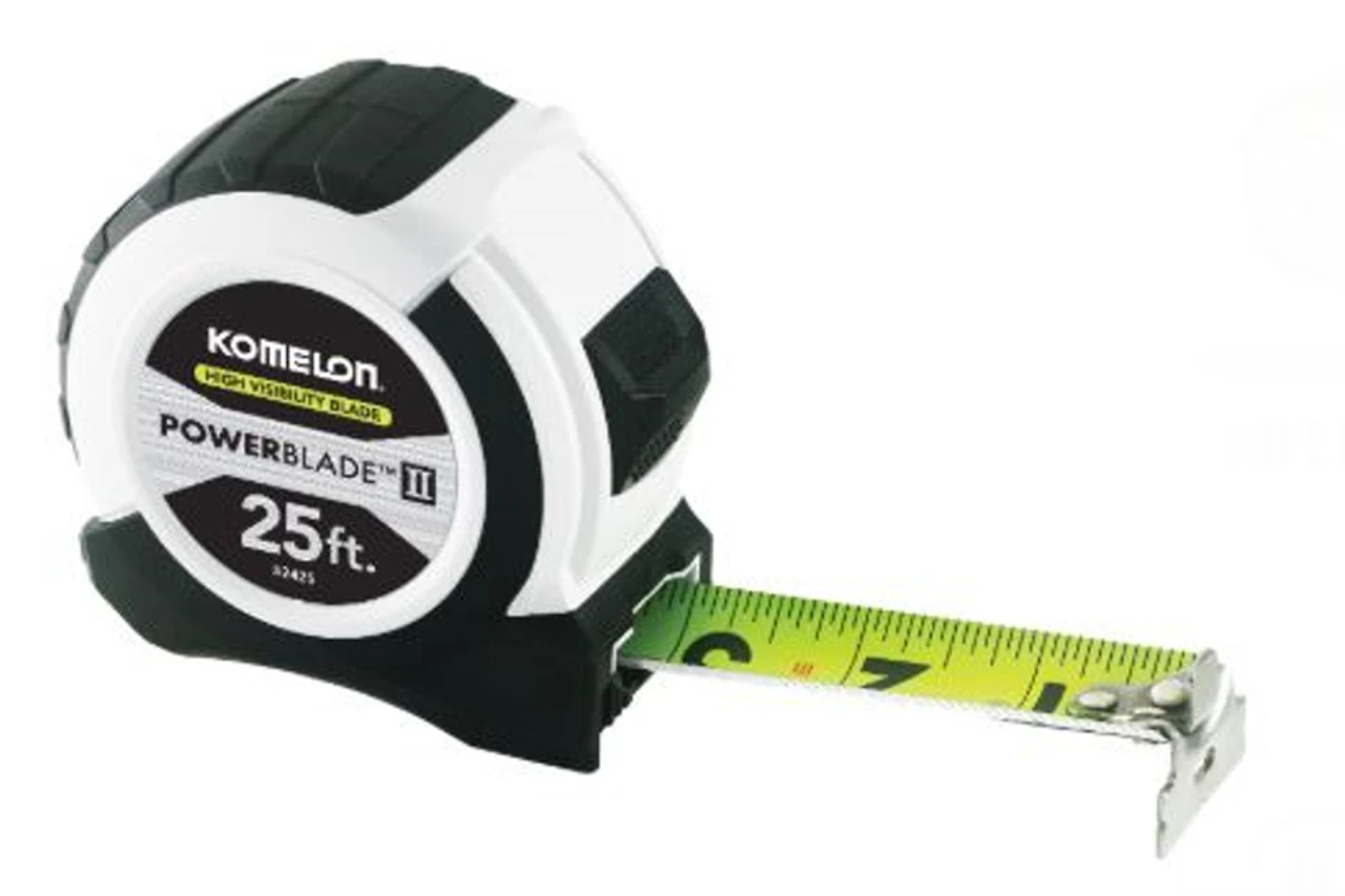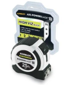 Our newest ABS Power Blade tape measure features a reinforced ABS plastic housing and high visibility blade. The high visibility paint color and large read printing make this tape very easy to read in all types of light. The redesigned, more compact case makes the tape easier to handle as well. This tape also features a dual end hook, and printing on both sides of the “wider” blade.