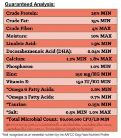 - Guaranteed levels of Omega 3 & Omega 6 fatty acids to support coat & skin health