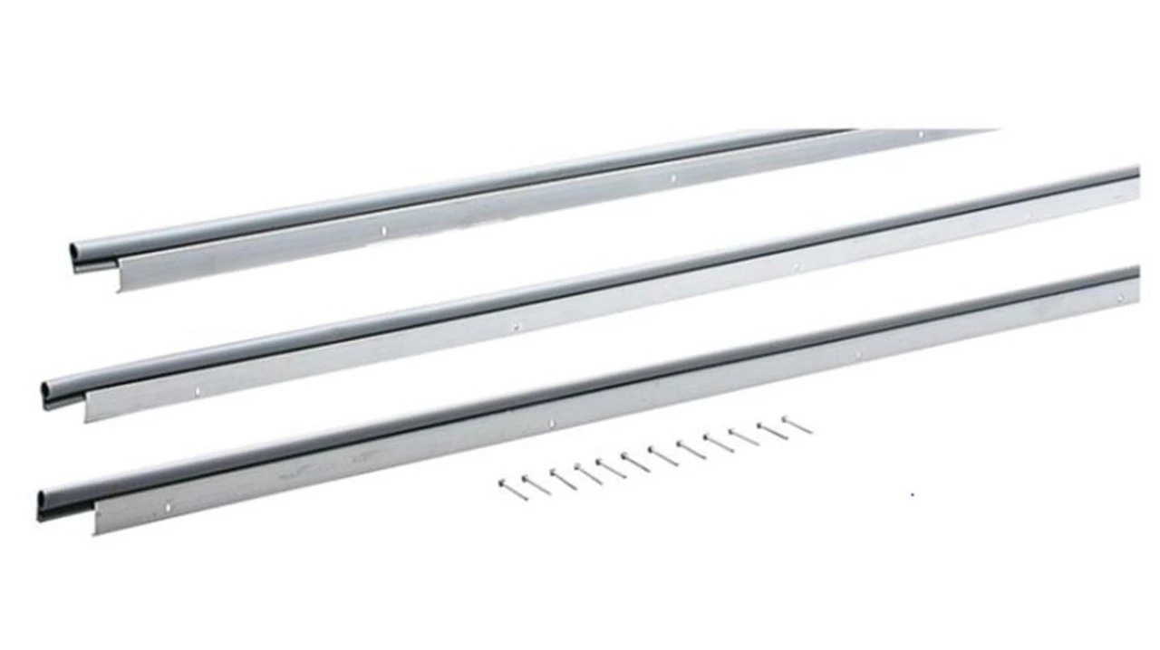 Made of aluminum and vinyl. Nail fasteners for wood frame doors, screw fasteners for wood or steel frame doors. Fasteners included. Install on doorstop. Slotted fastener holes provide easy installation and adjustment. Includes 3 pieces.