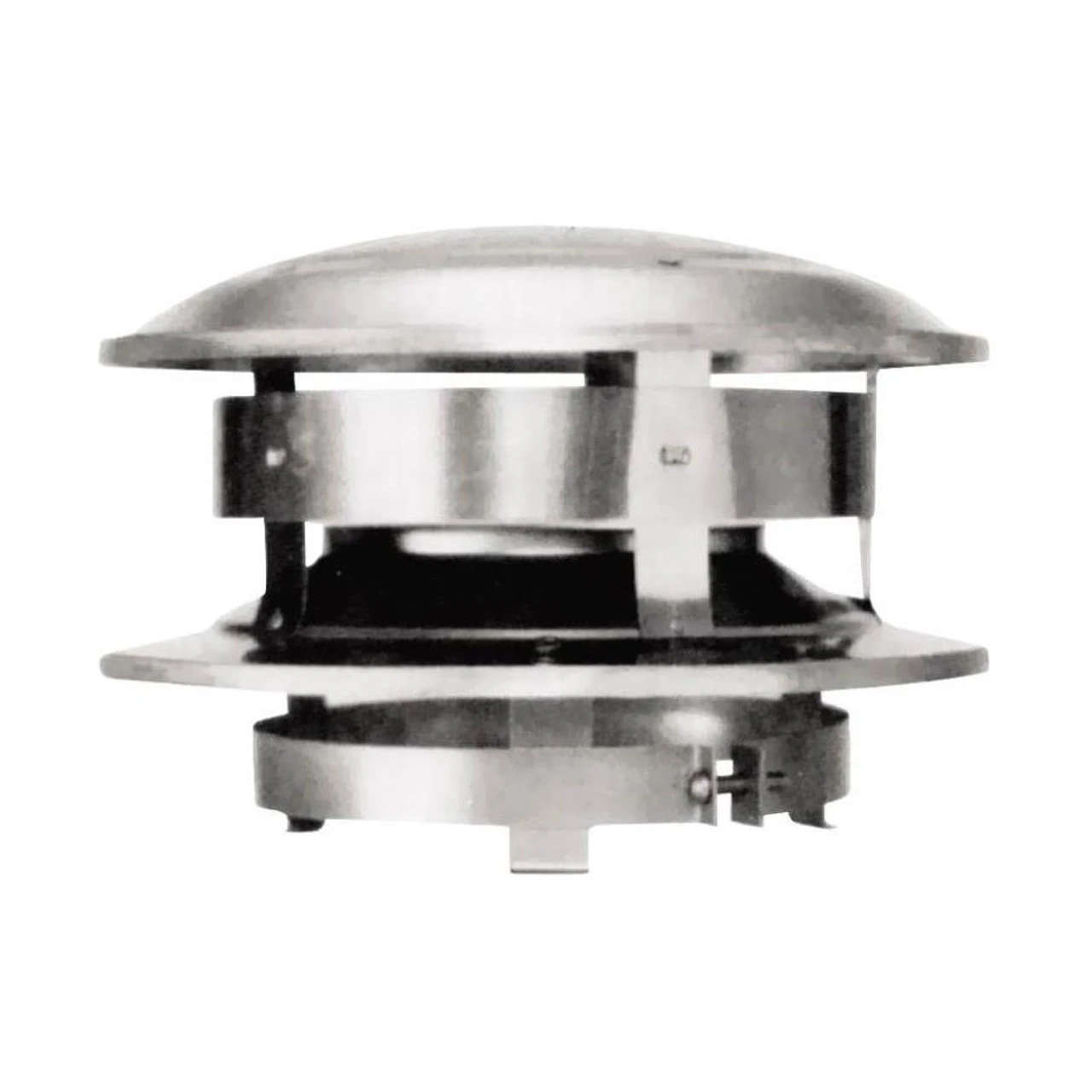 Designed with a dome to exclude rain and leaves and a lower skirt to deflect wind for proper chimney draft.