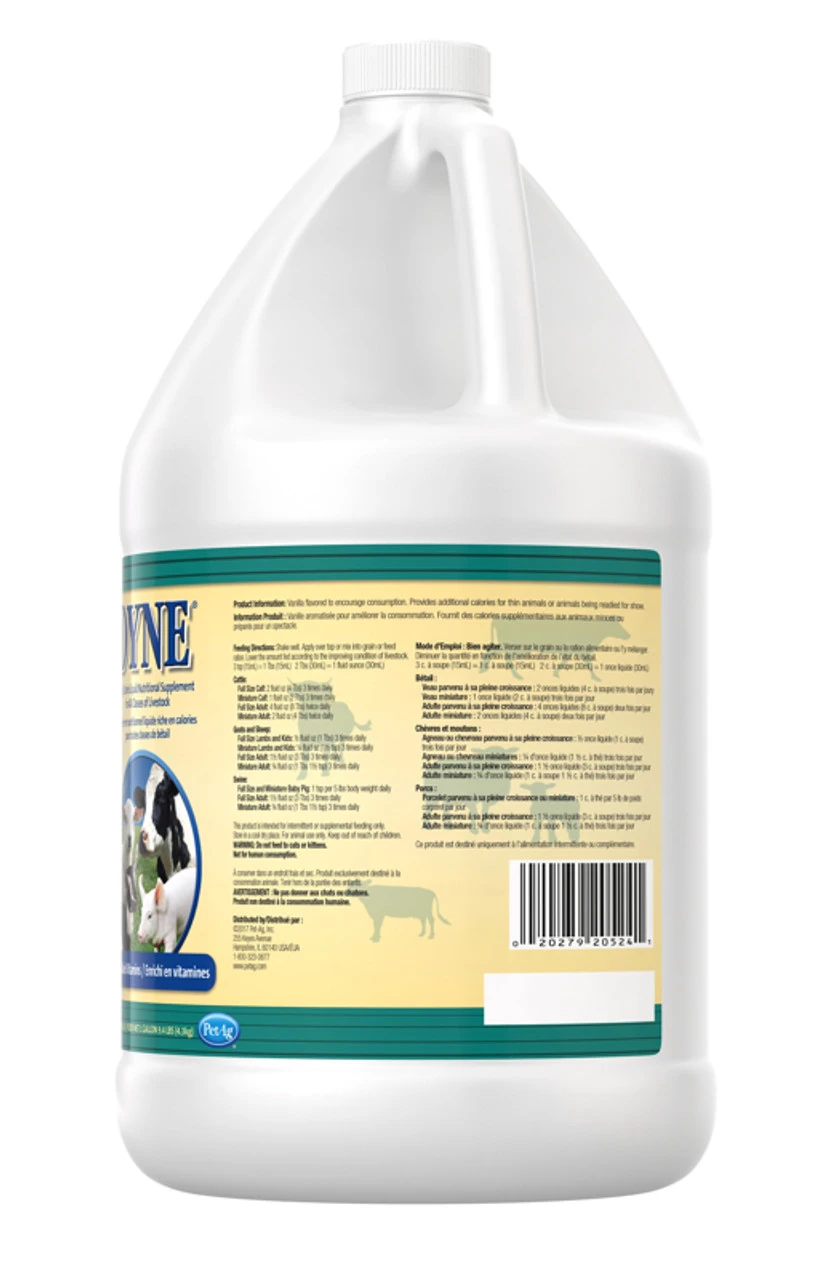 Give your farm friend a much-needed energy boost with the Dyne High Calorie Liquid Livestock Supplement. This nutrient-rich, calorie-dense liquid provides extra fuel and nutrition for animals recovering from stress, illness, birth, pregnancy and nursing. It comes in an easy-to-feed liquid that can be mixed into food or administered orally and it tastes great, so even the pickiest eaters will love it. Promotes ideal weight and combats dehydration while providing a superior source of supplemental calories.