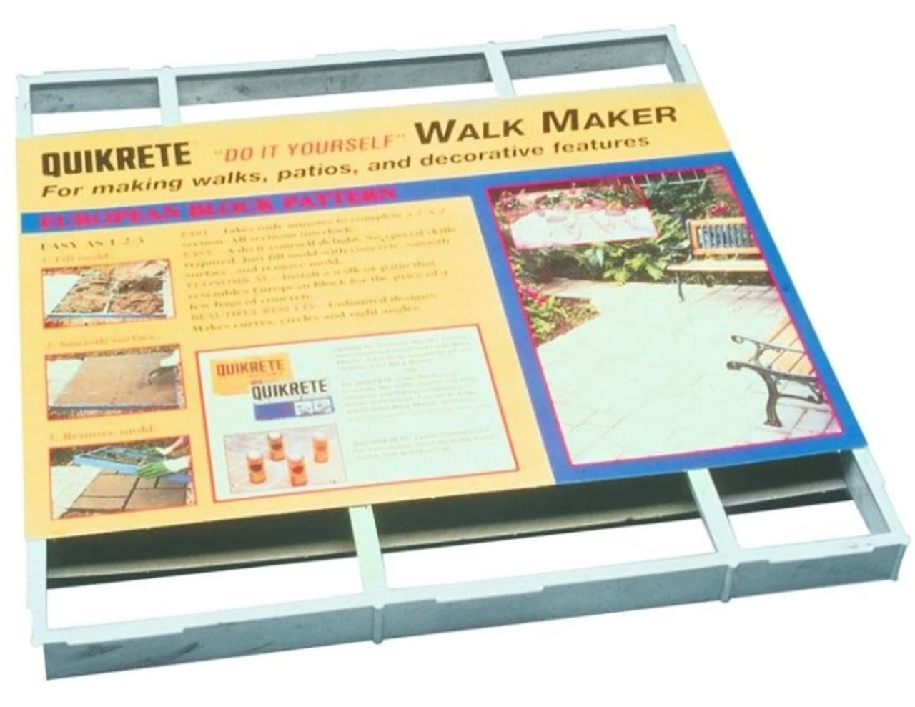 Easy to use, reusable plastic mold featuring a pattern of squares and rectangles in various sizes. Use to create block patterned walks, paths, patios, courtyards, etc. Fills with 80 Lbs. of concrete, Quikrete fiber-reinforced concrete recommended.