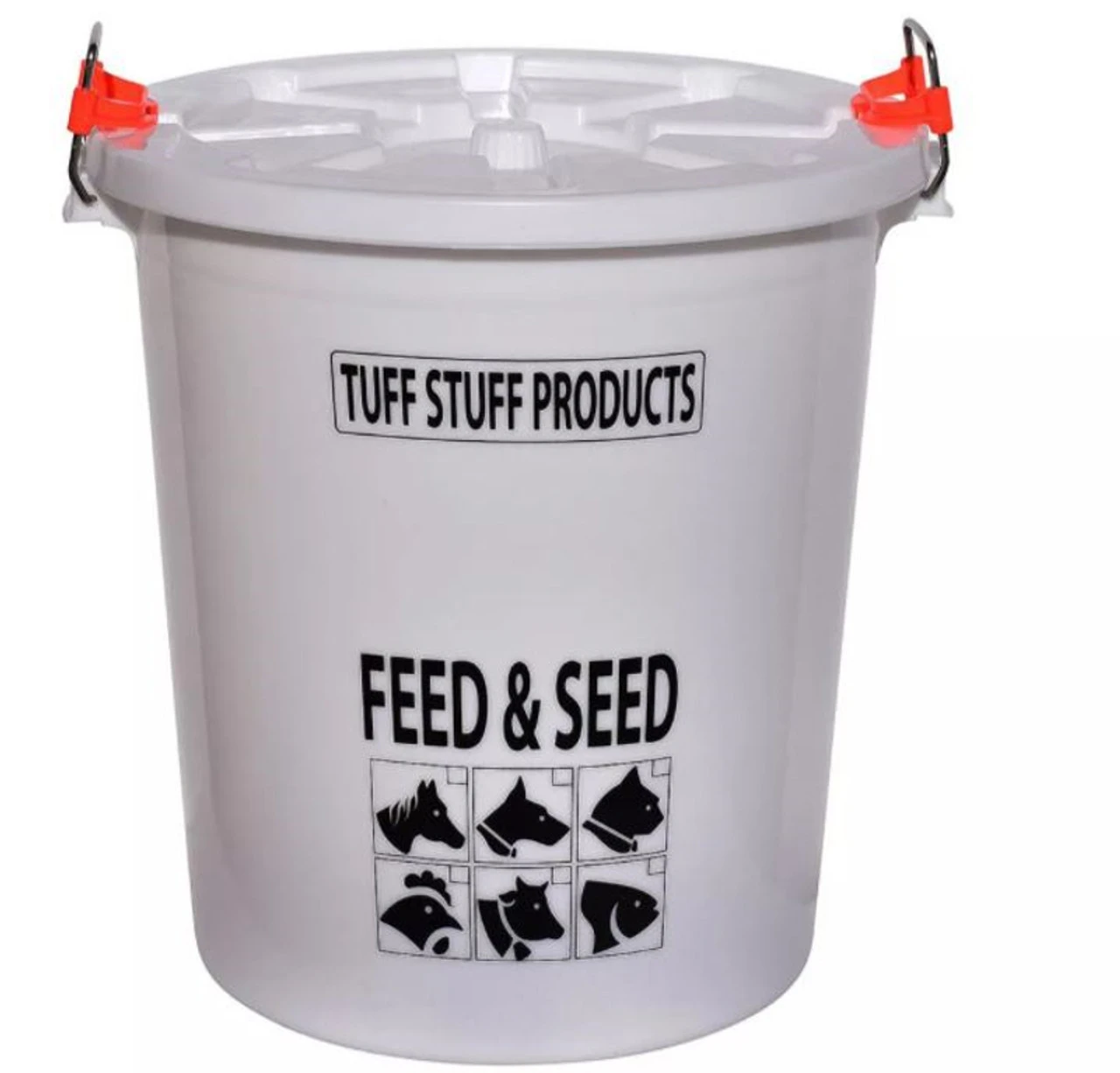 - Locking storage pail protects feed and seeds from mold, mildew, and varmints